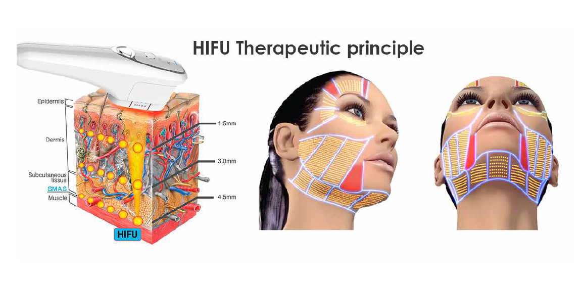 High Intensity Focused Ultrasound (HIFU) delivers the heat energy to SMAS layers and subcutaneous tissue that can stimulate and renew the skins colla ’ - gen and therefore improving the surface and reducing sagging of the skin. This technique can be applied to the face as well as the whole body, and also, it works equally well on every skin tone.