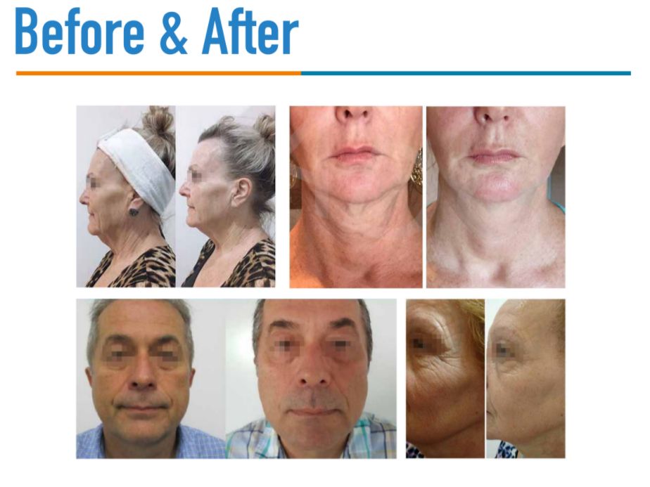 Treat sagging skin, aging phenomenon for any areas such as forehead, eyebrow, cheekbones, apples muscle, cheeks, chin, neck and body.